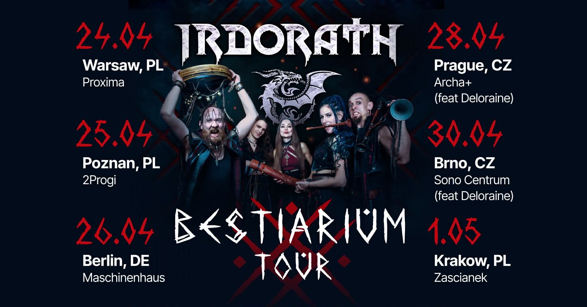 Презентационные концерты Bestiarium пройдут в Варшаве, Познани, Кракове и Берлине. На этих концертах группу поддержит польский фолк-дуэт Furda. Дополнительные концерты пройдут в Праге и Брно, где Irdorath выступят в качестве специальных гостей чешской группы Deloraine.