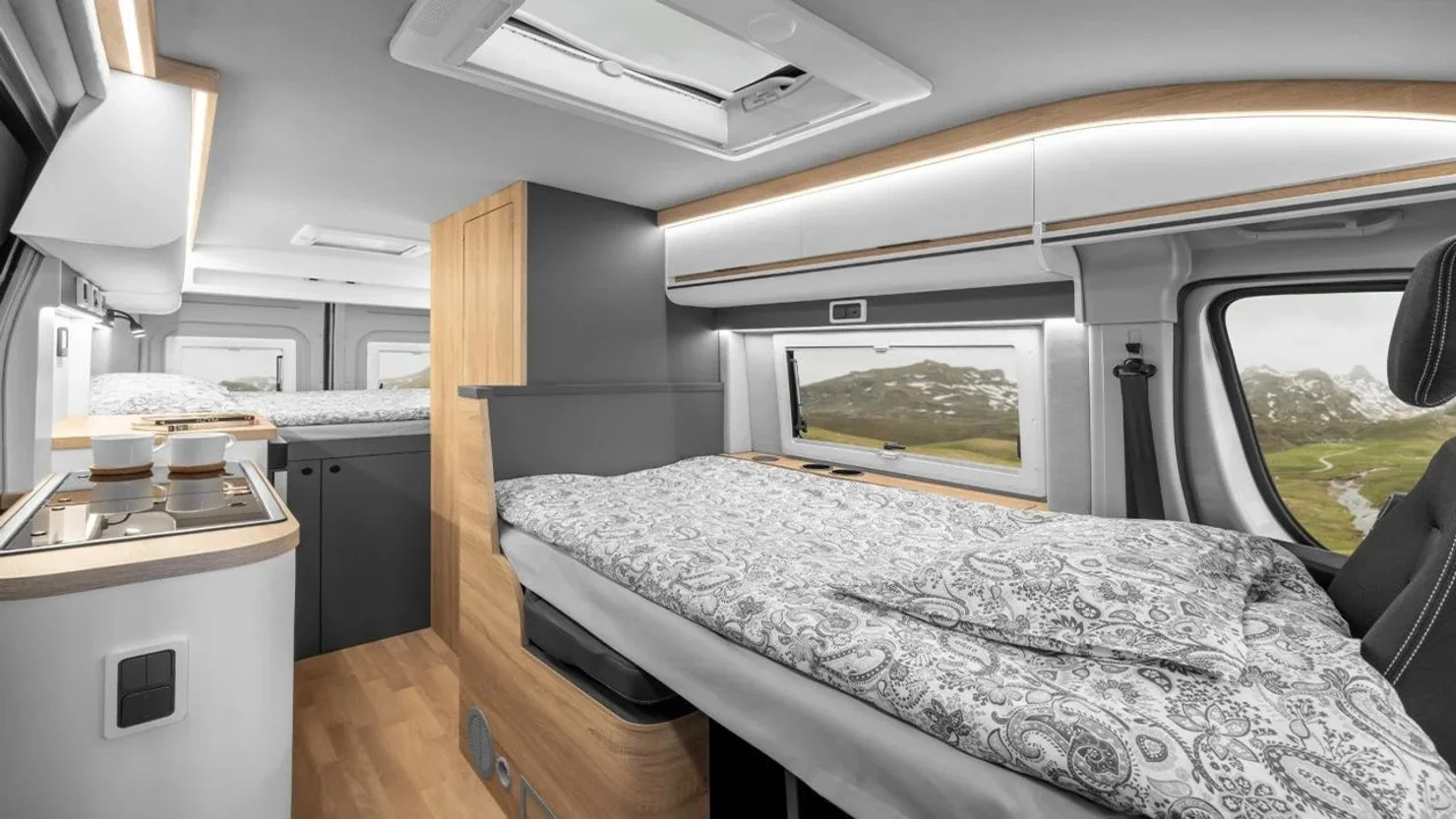 В салоне Toyota Proace Max установили две кровати и многочисленные шкафы. Также появились раскладной стол и поворотные сиденья.