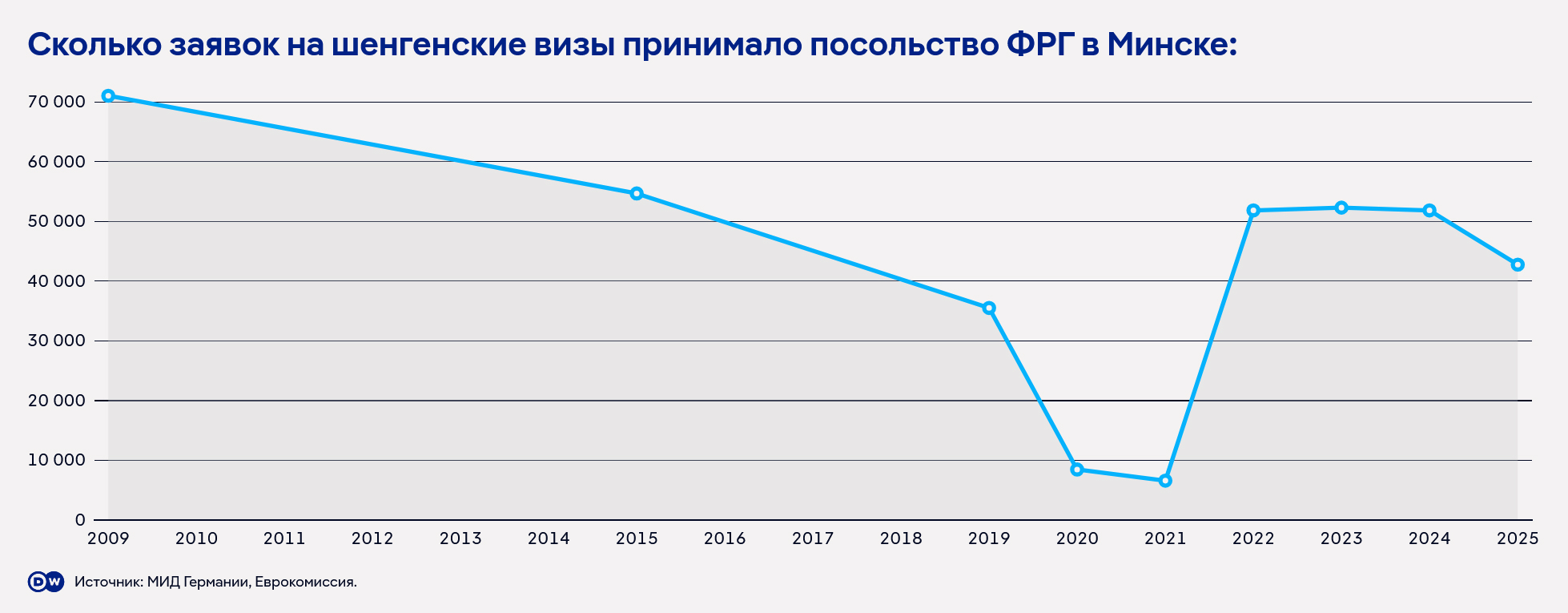 В 2025 году посольство ФРГ в Минске выдало белорусам 42 тысячи 763 шенгенские визы типа C, которые подходят для туризма, деловых поездок, посещения родных и друзей. Для сравнения, в Объединенных Арабских Эмиратах ФРГ выдала 40 560 виз при населении в 11 млн человек.