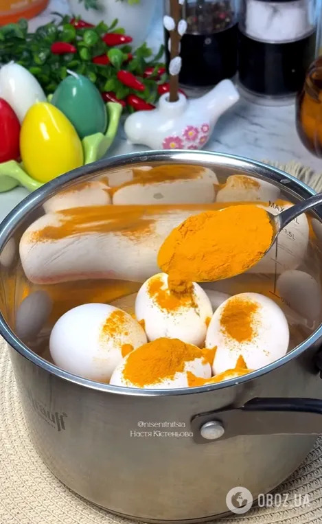 Издание FoodOboz поделилось легкой и быстрой технологий покраски яиц куркумой для пасхального стола.