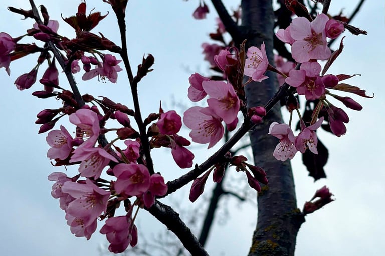 Пик приходится всего на два-три дня, когда деревья покрываются плотными розовыми «шапками». В целом же цветение длится около недели.