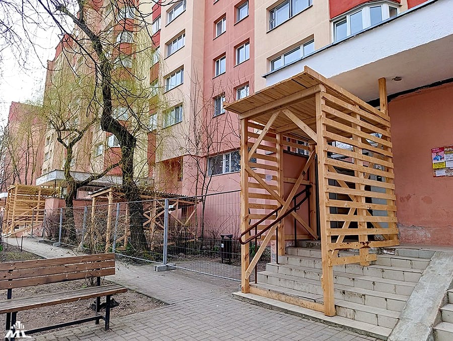 Капитальный ремонт проводится в пяти из десяти домов, которые примыкают друг к другу и образуют жилой комплекс на улице Максима Танка.